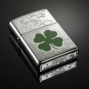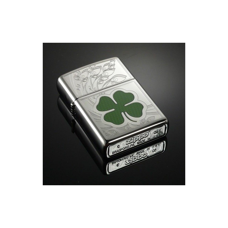 Зажигалка Zippo с изображением четырёхлистного клевера, зеркальная полировка.