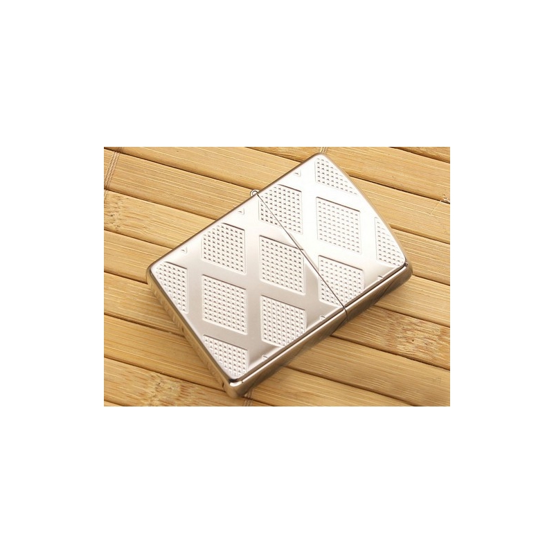 Бензиновая зажигалка Zippo имеет серебристый хромированный корпус с зеркальным блеском. Корпус усилен по технологии Armor и стенки примерно в полтора раза толще, чем у стандартных зажигалок Zippo (на миллиметр шире обычного). На зажигалке нанесен рельефный узор в виде ромбов, которые эффектно выделяются, создавая текстурность.
